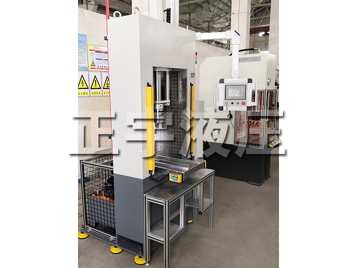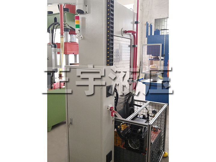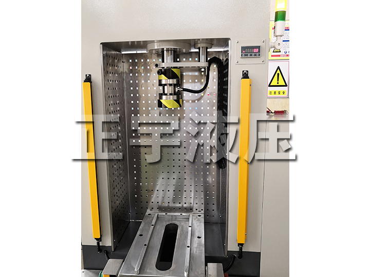 2、主缸为活塞式油缸,内设快速缸,可实现高速下行,慢速压制动作。 提高生产效率。油缸为上油缸式,冲压滑块工作时从上往下压制,下模静止,上模压制。